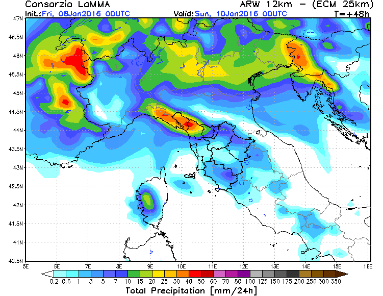 Sabato 9 gennaio: tempo perturbato con precipitazioni abbondanti e persistenti anche in montagna e per tutta la giornata. Temperature in ulteriore lieve aumento, venti di libeccio in rinforzo nella seconda parte della giornata.