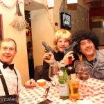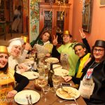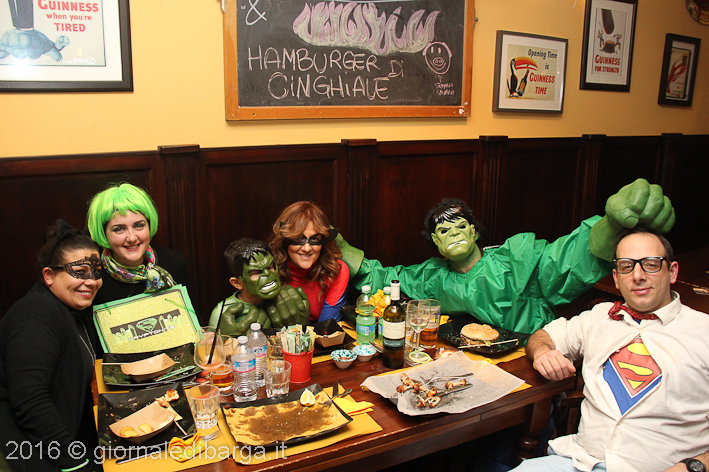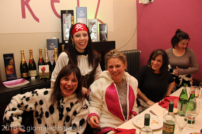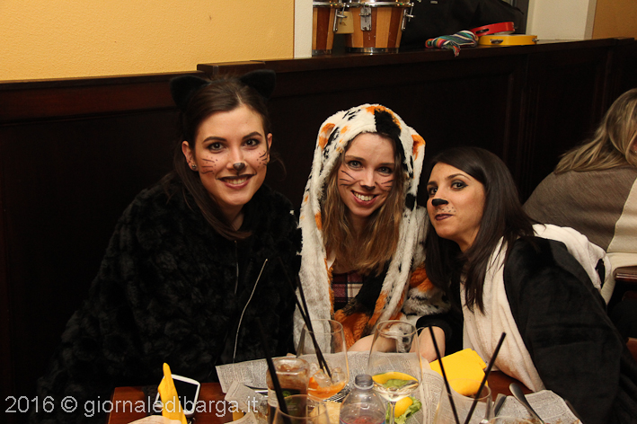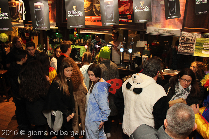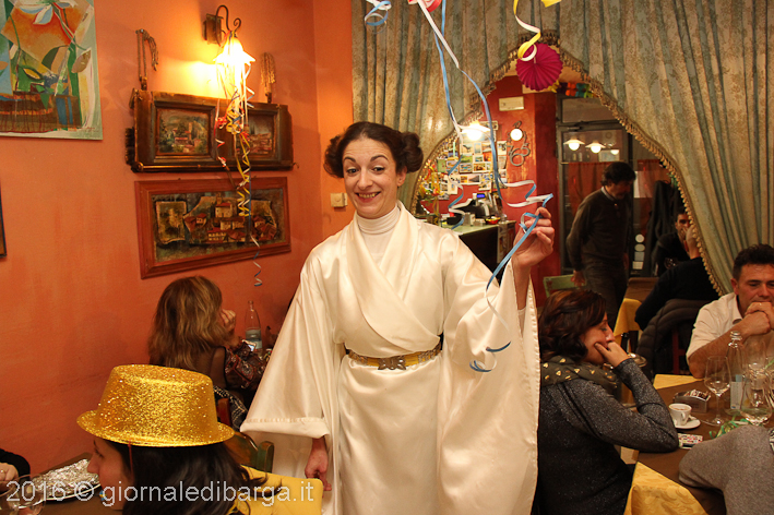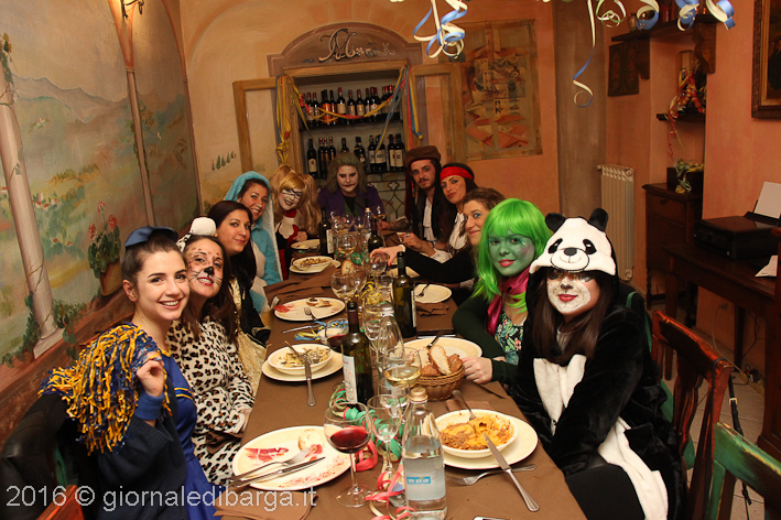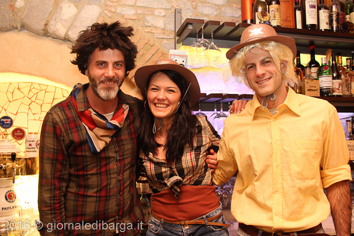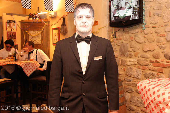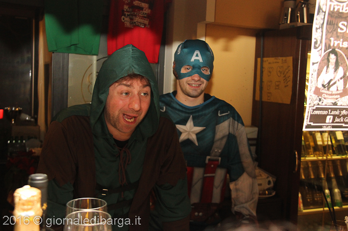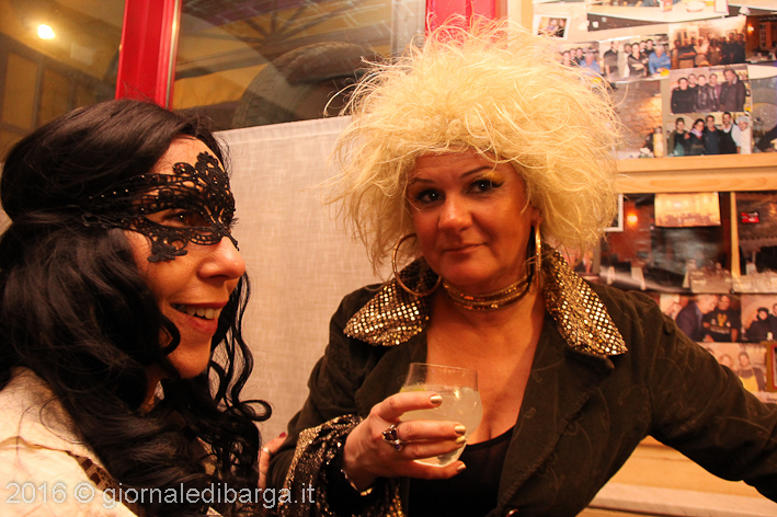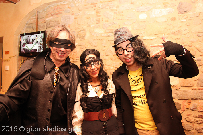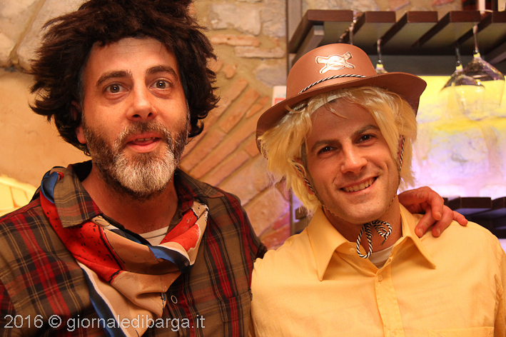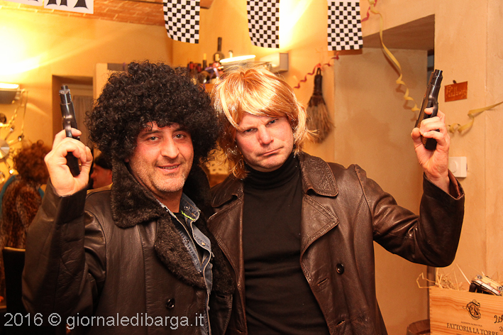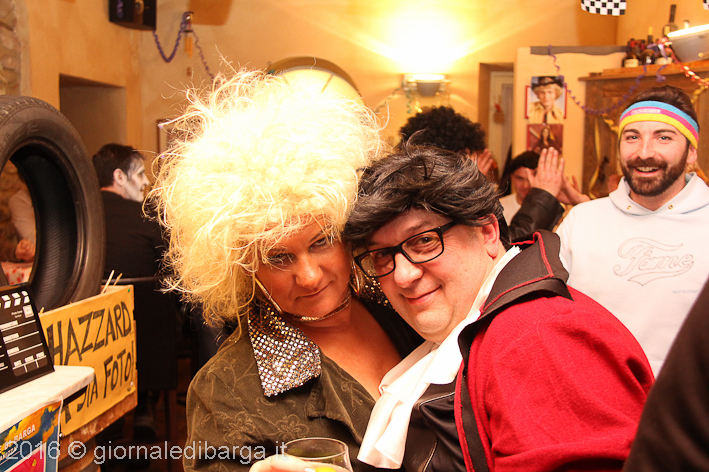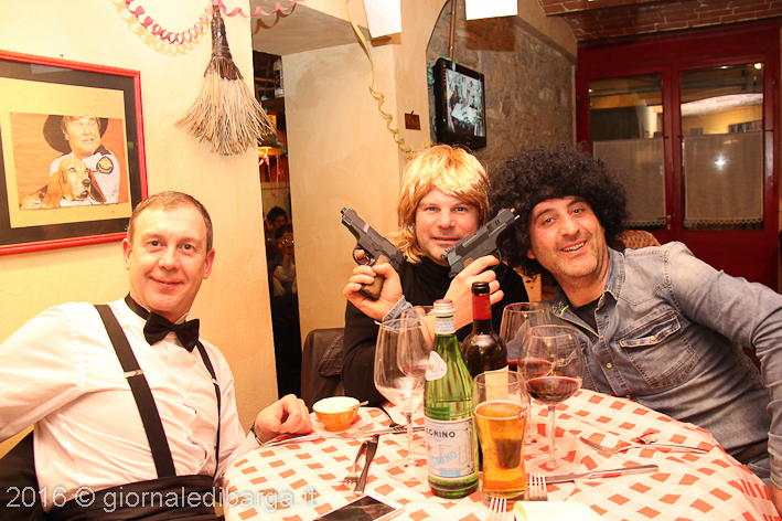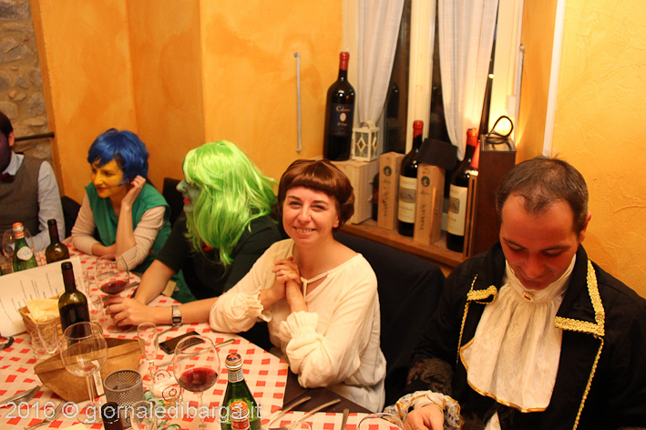 Proprio i ristoranti dell’antico castello per la prima parte della lunga serata, divenuta poi nottata, si sono riempiti di maschere di ogni tipo, spesso perfettamente in sintonia con il tema proposto dai vari ristoranti: allo Scacciaguai il tema erano i telefilm e le serie televisive anni ’80; alla Locanda di Mezzo il Punk; all’Altana le coppie speciali mentre allo Shamrock Pub i supereroi Mattel; tema libero invece al Bar del Paolo Gas.