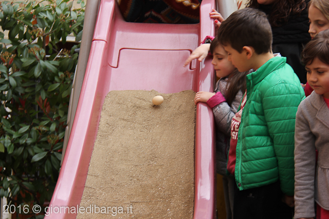 Nei giardini della scuola materna, nonostante il cielo sempre più grigio, si sono ritrovati in tanti, bambini e genitori, per prendere parte ad un vero e proprio revival di “giuochi” antichi che venivano svolti all’aria aperta nel periodo pasquale, come la corsa dei sacchi ed il famoso “Giuoco del Rotolino”. Molta è stata come detto l’affluenza di grandi e piccini, che soprattutto si sono sbizzarriti nelle varie gare, tra cui anche l’uovo da esposizione, con in premio tante uova di cioccolata.