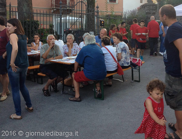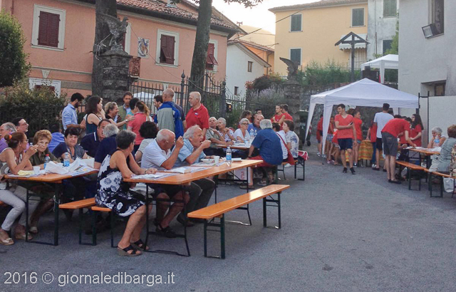 Nella prima serata cena a base di pesce e patate ovviamente e come dolce bomboloni, ma sono stati molto graditi anche i primi risotto di mare e un ottimo farro con funghi e spinaci; e sempre per i non amanti del pesce anche wurstel e patatine. Infine, per gli amanti del gioco, un torneo di burraco; Stasera 2 luglio, ultimo appuntamento, nella serata anche della partita dell’Italia: ancora cena e poi ballo in piazza con il duo “Renzo e Maria”; sperando di avere anche qualche motivo in più per festeggiare la serata.