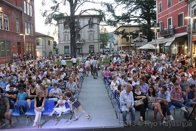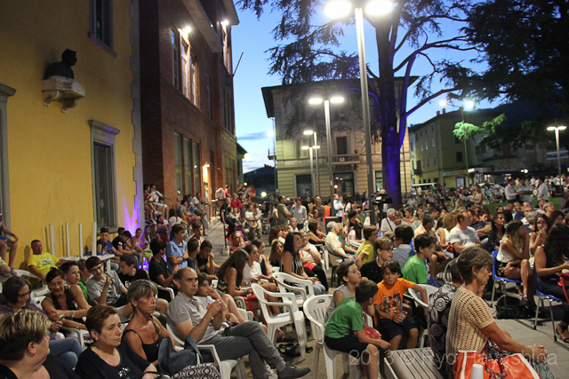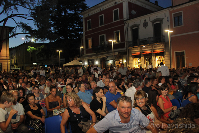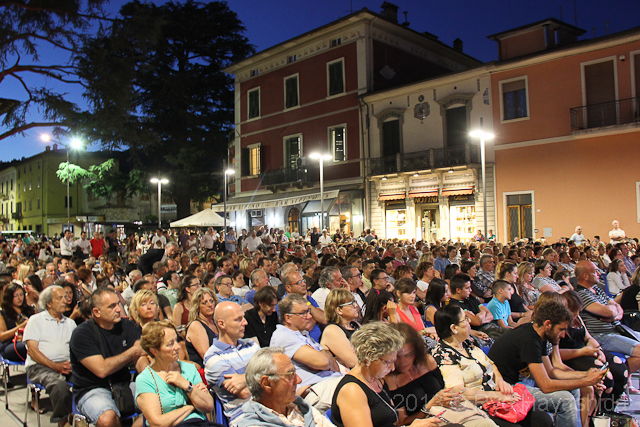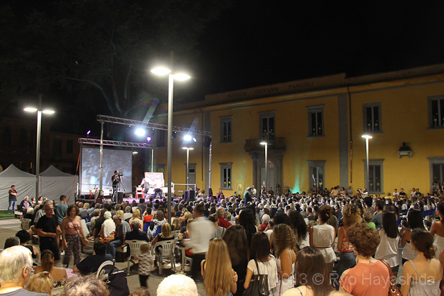 Il tutto di fronte ad una piazza Pascoli che così non si era mai vista, completamente gremita di pubblico a riempire le 300 sedie della platea, ma anche tutti i tavoli allestiti dai locali della zona lungo via Mordini e Largo Roma; e pure ogni spazio disponibile nel perimetro della piazza.