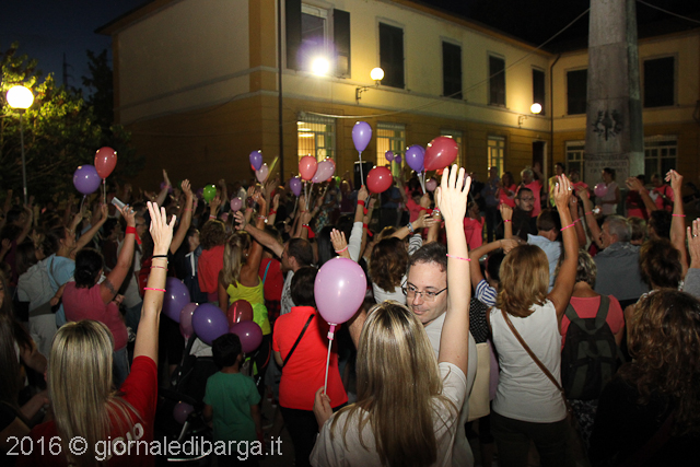 Un numero impressionante per una manifestazione di mezza estate; una piazza IV Novembre completamente gremita di gente; un lungo corteo che ha girato tutte le vie di Fornaci e Bolognana. Che testimonia lo sdegno e la partecipazione emotiva della popolazione della Valle del Serchio al terribile episodio che si è verificato solo pochi giorni fa a Lucca e che ha portato alla morte orribile di Vania. Tutti erano lì per lei, a cominciare dagli organizzatori dell’evento, Giannetto Lucchesi in primis, fino alle autorità presenti, l’on. Raffaella Mariani, il consigliere regionale Ilaria Giovannetti, il presidente della Provincia Luca Menesini, il sindaco di Barga, Marco Bonini. Con loro anche la Commissione pari opportunità di Barga, rappresentata in particolare da Sonia Ercolini (commissione partner della manifestazione), ma soprattutto tanta gente comune che con i braccialetti rosa, i palloncini colorati, tante maglie, spesso rosa, con sopra messaggi dedicati al rispetto delle donne, hanno voluto in qualche modo rendere il loro saluto a Vania e dire no ad una violenza sulle donne che purtroppo è presente anche in Valle del Serchio.
