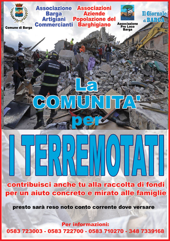 Barga reagisce alla tragedia delle vittime, delle famiglie, dei comuni colpiti dal terremoto che ha sconquassato le provincie di Rieti e Ascoli Piceno ed ha fatto più di 200 morti, con cifre ancora in aggiornano purtroppo.