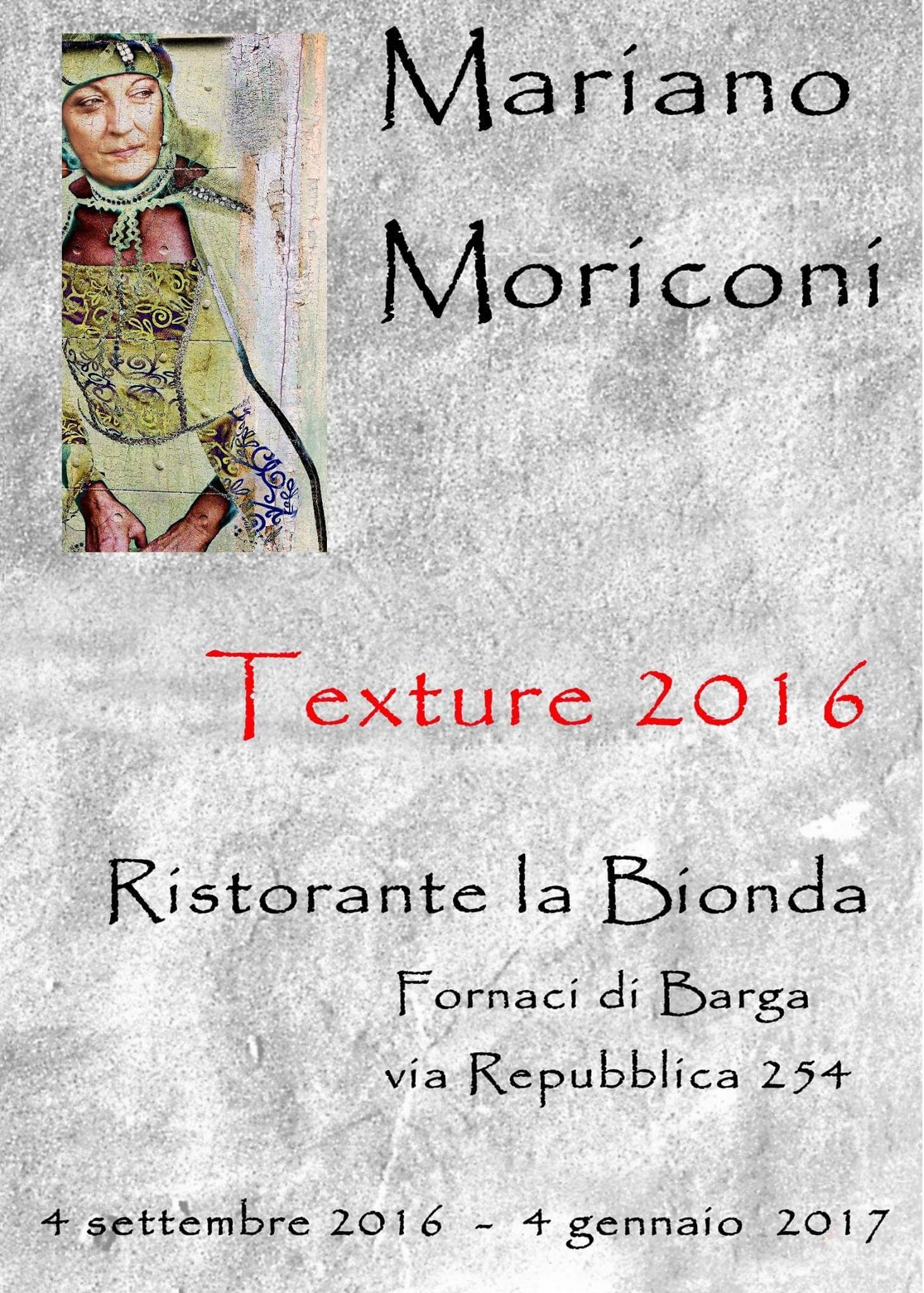 Dopo la bella mostra che qualche mese fu inaugurata dall’artista barghigiano Emanuele Biagioni, questa volta tocca al fotografo barghigiano Mariano Moriconi che da lunedì 5 settembre (inaugurazione il giorno 4) propone Texture 2016. L’esposizione invita ad un vero e proprio percorso tra arte e gusto, deliziandosi dei piatti sopraffini di questo locale, ma nutrendo anche la mente con le suggestioni delle speciali immagini del fotografo