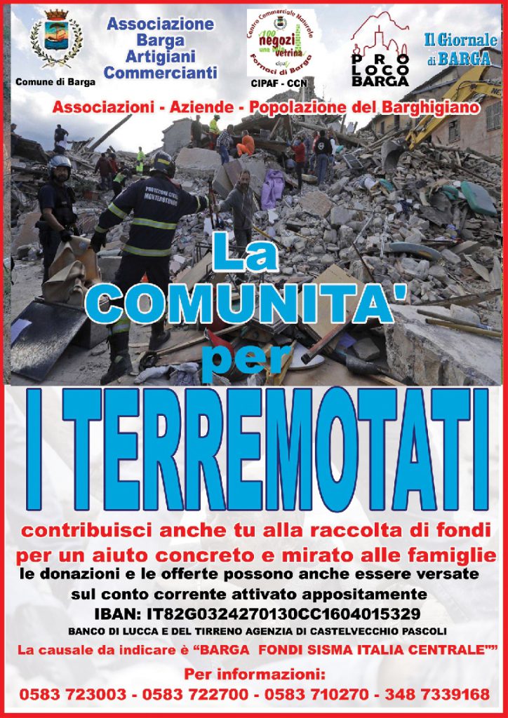 Intanto si continua a lavorare anche nella comunità barghigiana per raccogliere fondi. Allo studio varie iniziative, tra le quali ricordiamo quella degli alpini che hanno deciso di non organizzare lo spettacolo pirotecnico per l’80°, devolvendo quei soldi in favore dei terremotati.