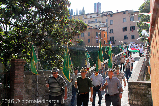 Il tutto in una Barga riempita dal tricolore, esposto anche con impegno dai negozi di Barga che sono voluto rimanere aperti quale omaggio agli Alpini.
