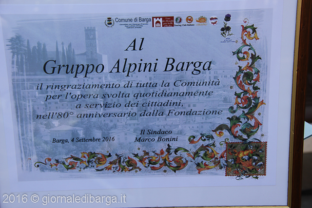 Una bella mattinata di festa per celebrare gli 80 anni delle penne nere di Barga, l’ottantesimo del Gruppo Alpini di Barga che oggi continua ad essere una delle associazioni più attive del territorio, punto di riferimento anche per molte iniziative di carattere sociale, grazie al lavoro svolto in questi anni da tanti appartenenti al corpo degli Alpini, come Giampiero Gonnella, Luigi Salotti o l’inossidabile Antonio Nardini giusto per citarne alcuni, ma anche grazie al lavoro che con rinnovato spirito viene portato avanti adesso dalle nuove generazioni, con il testa il capogruppo Andrea Bertolini, coadiuvato da Graziano Angelini (vice capo gruppo) e Gabriele Cardosi (segretario – cassiere).