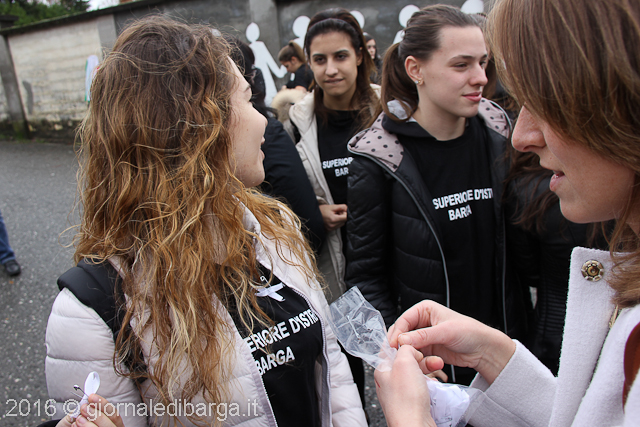 Dopo questo momento, i tradizionali fiocchi bianchi, simbolod ella lotta contro la violenza sulle donne, sono stati distribuiti a Barga ed a Fornaci.