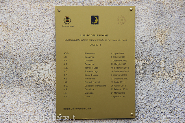 Lungo via Puccini è stato infatti inaugurato il muro delle Donne, una iniziativa svoltasi in contemporanea in molti centri della provincia di Lucca, per ricordare le 13 donne vittime di femminicidio in provincia di Lucca dal 2009 al 2016. Tredici, un numero impressionante e che è solo la tragica, violenta punta di iceberg di un fenomeno, quello della violenza sulle donne, che anche nella nostra Valle del Serchio, tra le mura domestiche, si sa essere molto diffuso, quanto sommerso e nascosto.