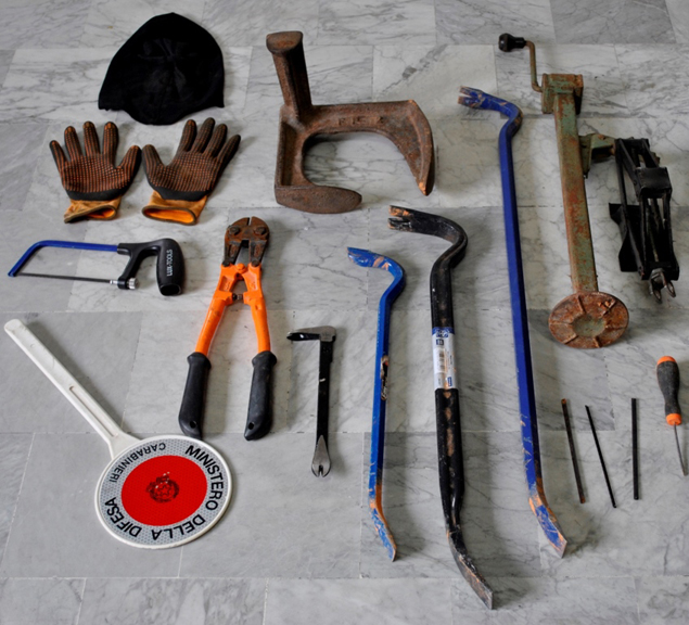Per quanto riguarda la banda, a seguito delle verifiche effettuate venivano ritrovati e sequestrati subito dopo anche gli attrezzi da scasso utilizzati dai tre e frettolosamente abbandonati prima della fuga. Sono invece tuttora in fase di identificazione gli altri due componenti il gruppo.