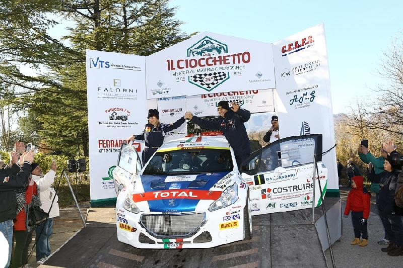 Il Ciocco. Paolo Andreucci, Anna Andreussi e la Peugeot 208 T16 della Racing Lions si sono aggiudicati, dominandola dalla prima all’ultima prova speciale, la edizione numero venticinque del Ciocchetto Rally Event, il tradizionale rally degli auguri natalizi, con scenario la splendida Garfagnana della Tenuta Il Ciocco. Il nove volte campione italiano rally ha lasciato alla concorrenza, numerosa e qualificata, la vittoria in una sola prova speciale, dove Andreucci si è concesso una piccola “distrazione”. Oltre alla soddisfazione di avere vinto la edizione delle “nozze d’argento” del rally Il Ciocchetto, Andreucci, già vincitore da queste parti nel 1997 (con la Ford Escort Cosworth e Simona Fedeli alle note) e nel 1999 (con la Subaru Impreza Wrc e Alex Giusti sul sedile di destra), con la terza affermazione affianca Paolo Ciuffi tra i piloti con più vittorie al Ciocchetto. “Sono contento di questa vittoria,- dichiarava alla fine un soddisfatto Andreucci– alla quale tenevo in modo particolare, dato che si festeggiava la ricorrenza dei 25 anni. Un plauso agli Organizzatori, che hanno messo in piedi una gara davvero divertente, ma con speciali sempre impegnative”. Mentre Anna Andreussi si aggiudica il prestigioso e artistico Trofeo alla memoria di “Icio” Perissinot, indimenticato inventore del rally Il Ciocchetto, consegnatole dalla figlia Serena Perissinot. “Sono molto orgogliosa di questo premio. Personalmente non ho avuto occasione di conoscere a fondo Perissinot, conosco la sua carriera nei rally e Paolo, che gli era affezionato, me ne ha sempre parlato molto”.