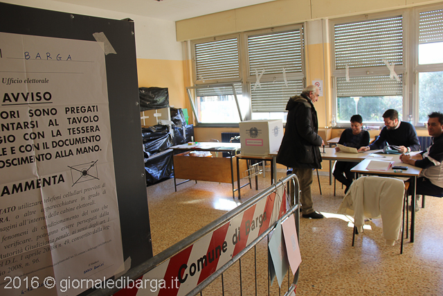 Ore 0,30 – scrutinate tutte le sezione del comune di Barga. Il No vince in 11 su 13 sezioni con il 54,81% e 3104 voti contro 2664. Le sezioni dove vince il sì sono solo la 8 e la 9.