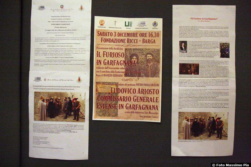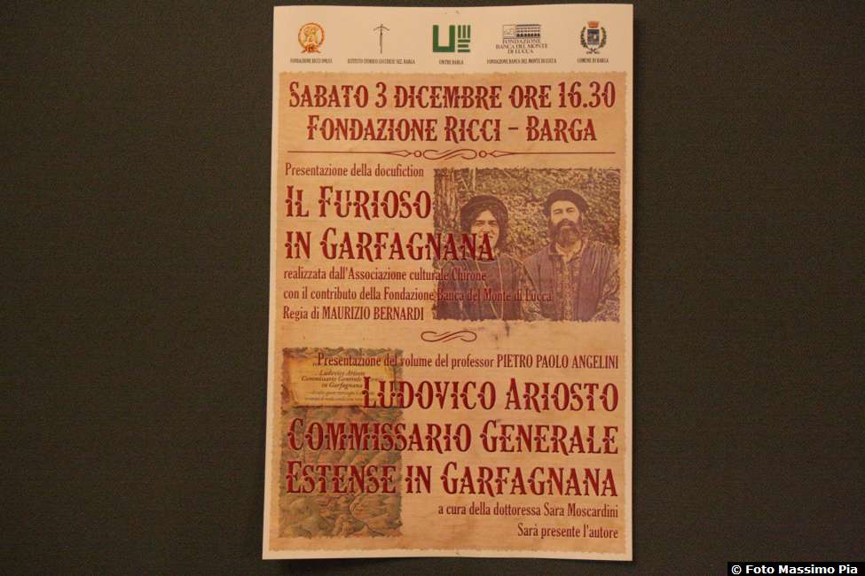 Il ricordo del cinquecentenario di Ariosto in Garfagnana si è già avviato da quest’anno, visto che nel 2016 sono caduti i 500 anni della pubblicazione dell’Orlando Furioso, come hanno già ricordato alcune belle iniziative come la mostra di Possenti tenutasi la scorsa estate presso la Fortezza di Mont’Alfonso. E ora è il turno di due meritevoli lavori promossi dalla Fondazione Banca del Monte di Lucca, quelli presentati lo scorso sabato a Barga: si tratta della docufiction “Il Furioso in Garfagnana” e del libro “Ludovico Ariosto Commissario Generale Estense in Garfagnana”.