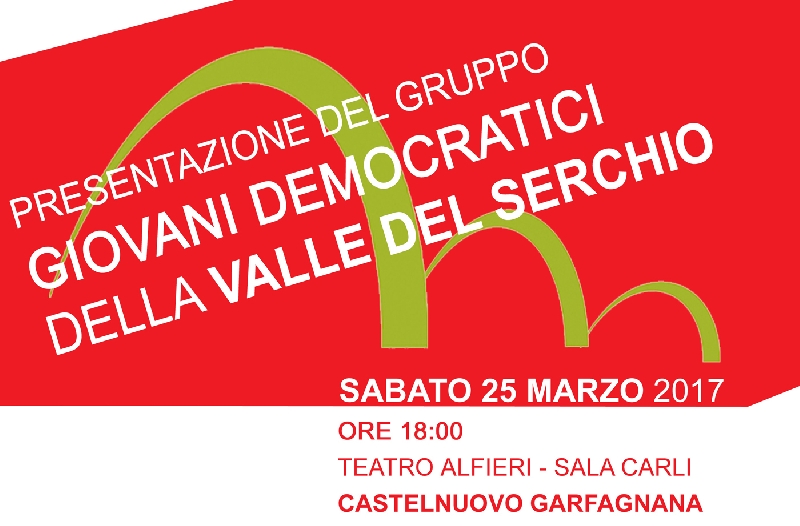 Al teatro Alfieri di Castelnuovo Garfagnana, sabato 25 marzo alle 18, si terrà la presentazione del Gruppo Giovani democratici della Valle del Serchio.