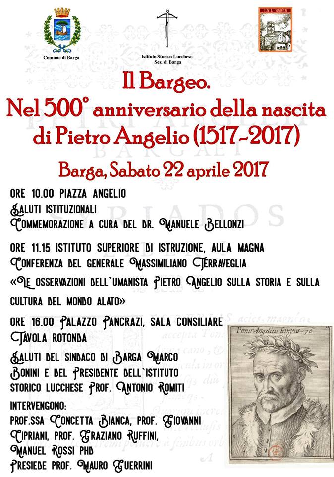 Barga si appresta a celebrare il 500° anniversario della nascita di uno dei suoi personaggi più famosi: Pietro Angelio (1517-1596), umanista, scrittore e precettore del Granduca di Toscana Ferdinando. Lo fa tramite una serie di iniziative che si terranno sabato 22 aprile, giorno dell’anniversario, su promozione dell’Amministrazione comunale, dell’Istituto Storico Lucchese sezione di Barga e di I.S.I. Barga.