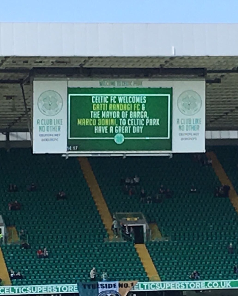 È previsto per questa domenica il rientro a Barga della comitiva dei Gatti Randagi, dopo il successo di queste giornate scozzesi. Oggi, sabato, ultime emozioni bianco verdi con tutto il gruppo al Celtic Park a tifare la squadra scozzese. I Barghigiani sono stati anche salutati prima della partita in modo ufficiale dal Celtic che ha porto a loro ed la sindaco di Barga il benvenuto tramite il grande schermo dello stadio. Un bell’onore davvero!