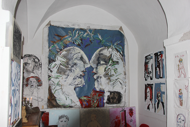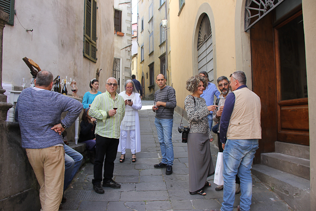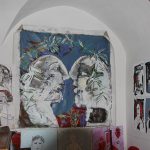 Tanti artisti ed amici presenti per salutare Giorgia, molto legata a Barga, , per una giornata alla scoperta di “Scampoli”, un collage di scampoli di tela, di opere (molto belle) di Giorgia che si trovavano nello studio, oggetto in queste settimane di un lavoro di risistemazione.