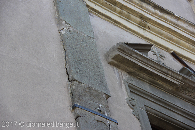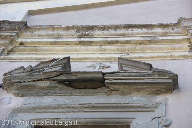 Proprio la facciata ora è a rischio ed ha bisogno di interventi anche veloci e sicuramente appropriati. L’appello viene lanciato dal proposto di Barga don Stefano Serafini che proprio stamani (21 giugno) ci ha mostrato i problemi in essere: la cornice di una delle finestre che adornano la facciata è seriamente danneggiata e rischia di cadere in più parti, ma ci sono altri punti delle decorazioni in pietra serena che si sono distaccati. Non versano peraltro in ottime condizioni anche le statue in marmo, ma indubbiamente il problema principale è quello del rischio della caduta delle pietre e dell’ulteriore danneggiamento delle finestre.