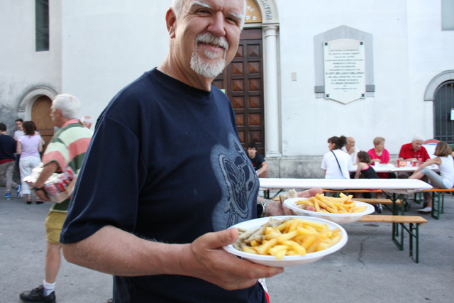 La rovella è un piccolo pesciolino di acqua dolce in genere, che si cucina fritto insieme a croccanti patatine. E’ la versione locale, si potrebbe dire, dello scozzesissimo “fish & chips”.
