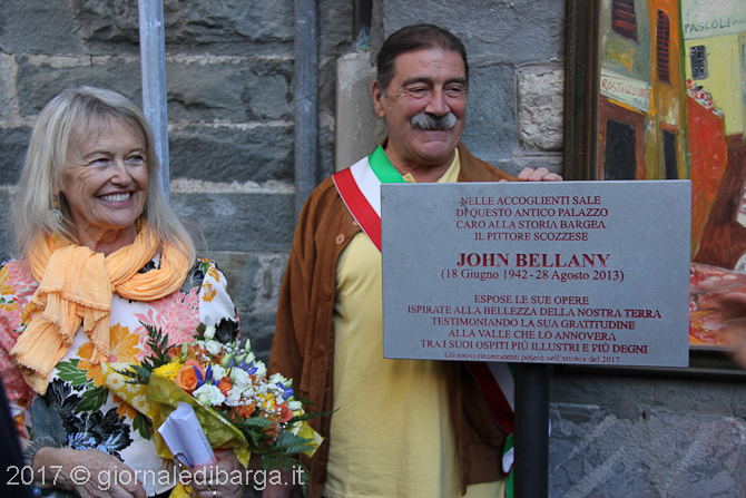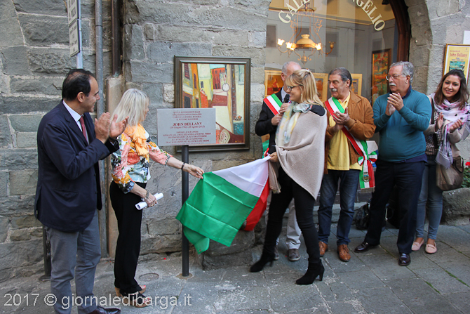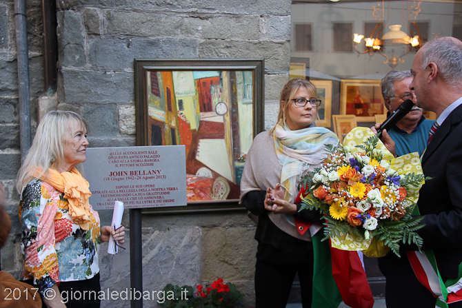 Solo questa ultima frase basta a riassumere il bel ricordo che la moglie di John Bellany ha pronunciato questo pomeriggio in piazza Angelio in occasione della scopertura della lapide voluta dagli amici di Barga per tributare all’artista il ricordo perenne della “sua” Barga. In quella barga, come ha ricordato il senatore Andrea Marcucci dove dopo Pascoli anche Bellany scoprì il bello ed il buono e trovò il suo eden.