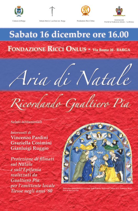 sabato 16 dicembre alle ore 16.00 presso la Fondazione Ricci Onlus di Barga si terrà “Aria di Natale. Ricordando Gualtiero Pia”.