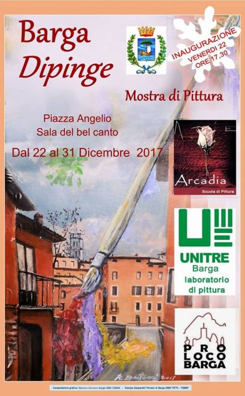 Coloriamo Natale con la mostra di pittura “Barga Dipinge” una raccolta di quadri degli studenti delle scuole di pittura di Unitre Barga e Arcadia insieme alle opere dei loro docenti. Inaugurazione venerdì 22 dicembre alle ore 17,30 in Piazza Angelio