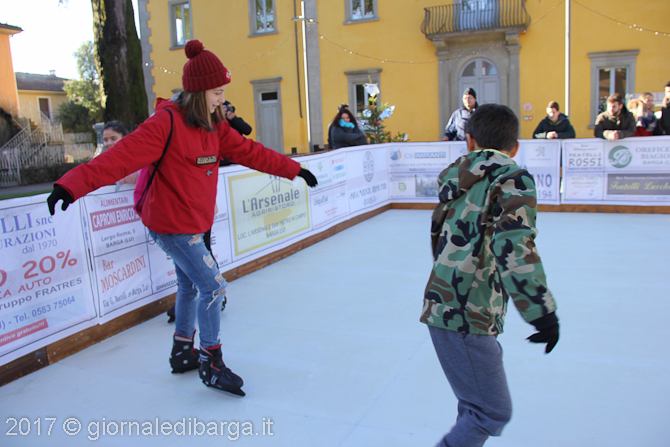 Dopo il rinvio per pioggia di ieri, è stata inaugurata questa mattina la pista di pattinaggio su ghiaccio sintetico voluta fortemente dalla Pro Loco di Barga con il supporto di ArtCom Barga e di tanti sponsor.