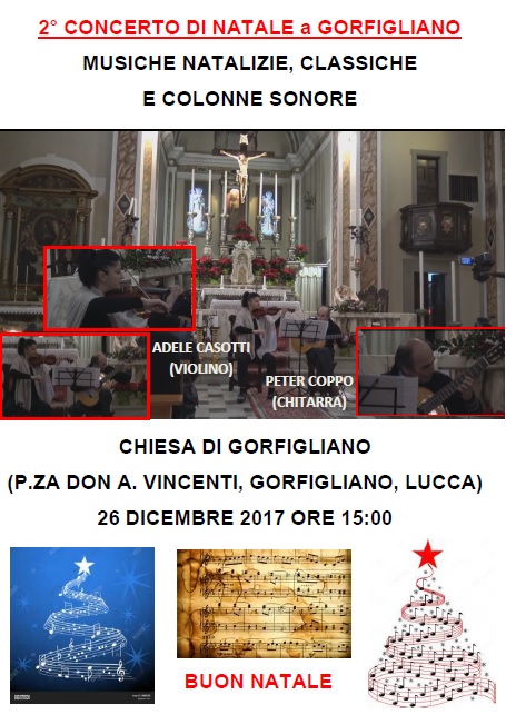 Musiche natalizie, classiche e colonne sonore saranno eseguite da Adele Casotti al violino e Peter Coppo alla chitarra.