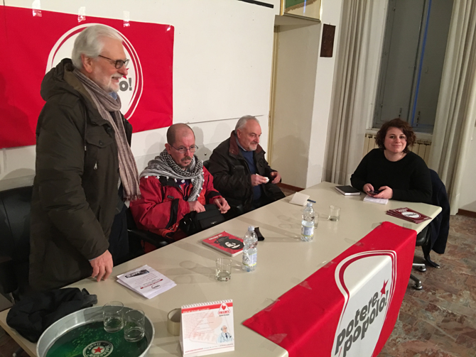 L’introduzione della serata e la presentazione dei candidati è stata a cura di Giulio Strambi che ha ricordato come è nata questa lista che vuole rappresentare unitariamente la vera sinistra e soprattutto le esigenze del popolo: “Una realtà fatta di operai, precari, giovani, pensionati, per poter raccogliere le esigenze di tutti”