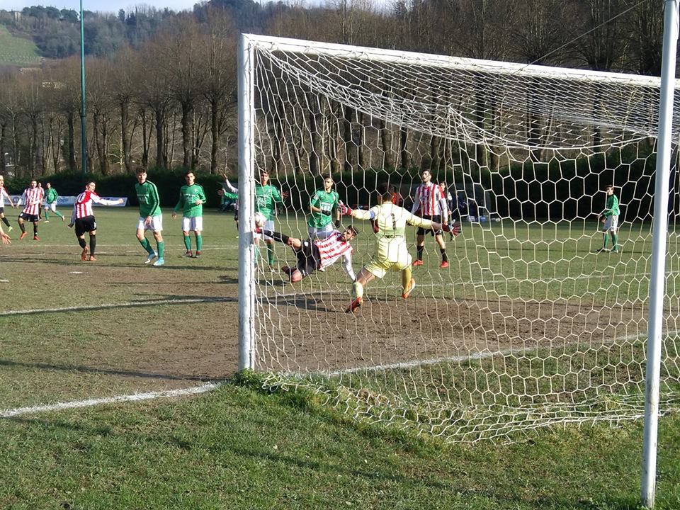Il gol infonde ancora più fiducia ai biancorossi. Al 12′ staffilata di Nottoli dal limite dell’area e palla che sfiora l’incrocio dei pali alla sinistra del portiere ospite. Al 30′ percussione sulla destra di Frati che stringe verso la porta cercando il secondo palo: la palla finisce alta di poco. La coppia d’attacco biancorossa è straripante. Al 34′ è Micchi a colpire al volo ma il portiere para; azione successivamente fermata per posizione di fuorigioco dello stesso Micchi. Al 39′ azione personale di Chelini che va al tiro dai venti metri ma il portiere para in tuffo. Al 42′ ancora un palo: gran tiro di Michelotti dal limite è palla sul legno alla destra del portiere proteso in tuffo.