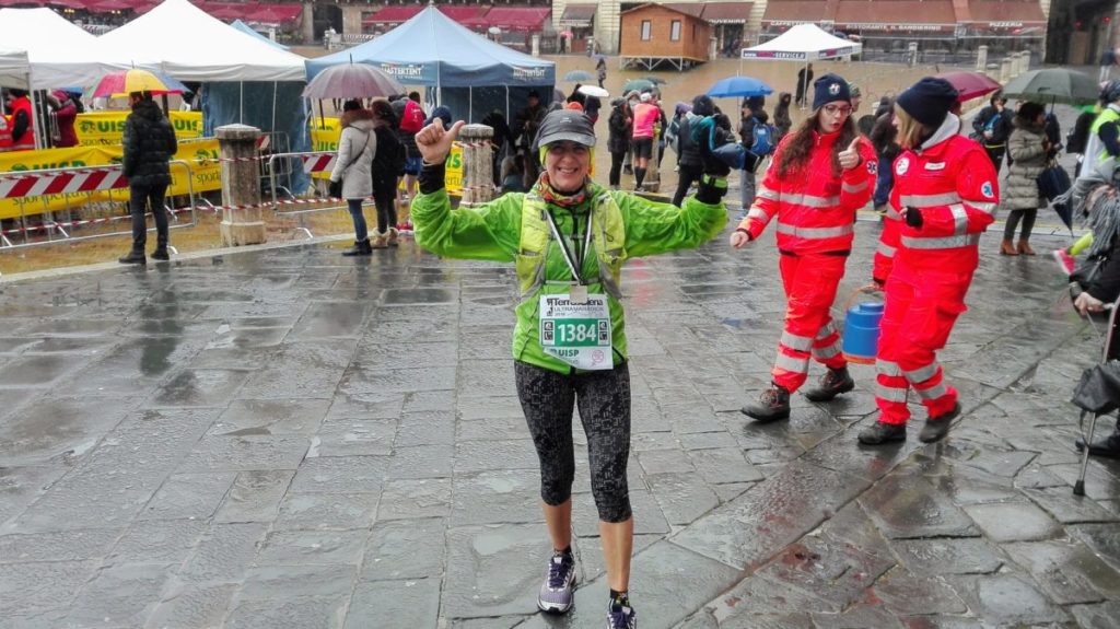 Per tutti l’arrivo a Siena nella meravigliosa e suggestiva Piazza del Campo. La portacolori del Gruppo Marciatori Barga Lucia Chiappa ha partecipato alla 18 km con partenza da Monteriggioni. Nonostante il tempo inclemente con pioggia, vento e neve, corre bene e arriva in Piazza del Campo con la soddisfazione di essere al 2° posto di categoria con il tempo di 1.52.10.