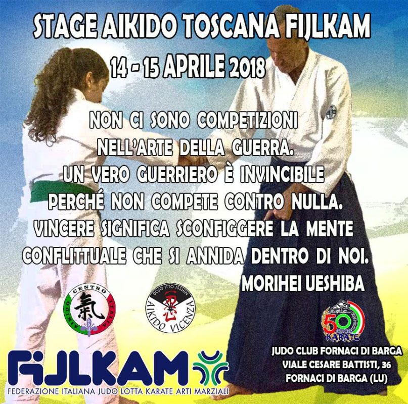 Sabato 14 e domenica 15 aprile si terrà a Fornaci, presso la palestra del judo club lo Stage Regionale di Aikido, con sessione di esami per 1° e 2° Dan Coni – Fijlkam , tenuto dal Maestro Livio Zulpo .