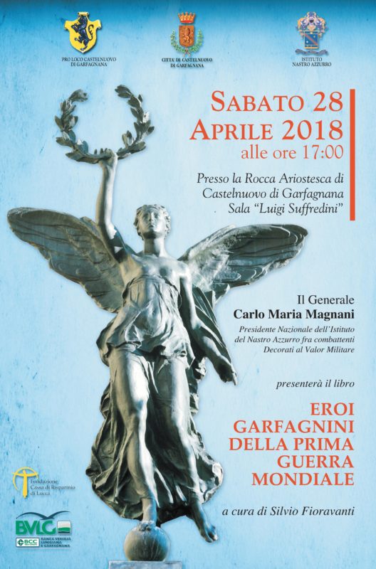 Il libro, curato da Silvio Fioravanti, sarà presentato dal Generale Carlo Maria Magnani, Presidente Nazionale dell’Istituto del Nastro Azzurro fra combattenti Decorati al Valor Militare, sabato 28 aprile 2018 alle ore 17:00 presso la Sala “Luigi Suffredini” a Castelnuovo di Garfagnana.