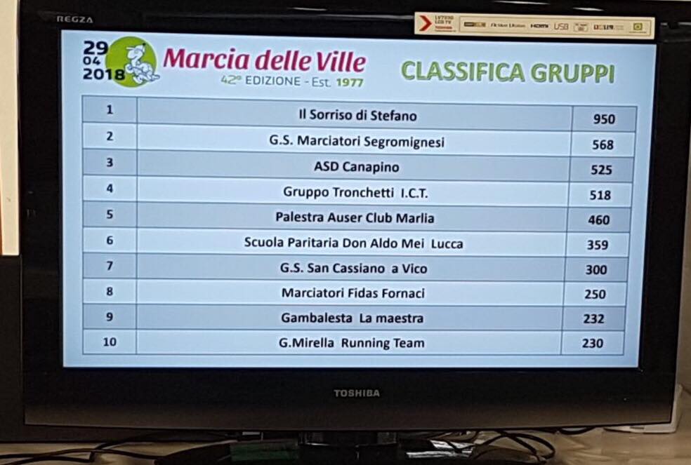 Il Gruppo di Fornaci, neonato pochi mesi fa, con i suoi 250 iscritti è risultato l’ottavo gruppo nella classifica generale per numero di partecipanti. Un risultato davvero ragguardevole se si pensa alla grande partecipazione a questa marcia, con migliaia e migliaia di podisti.