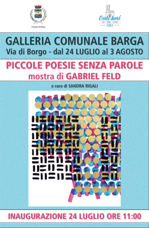 Martedì 24 luglio (ore 11), sarà inaugurata alla galleria comunale (via di Borgo, Barga) la mostra “Piccole poesie senza parole”: opere di Gabriel Feld, allestimento a cura di Sandra Rigali, organizzata da Cento Lumi con il patrocinio del Comune di Barga.