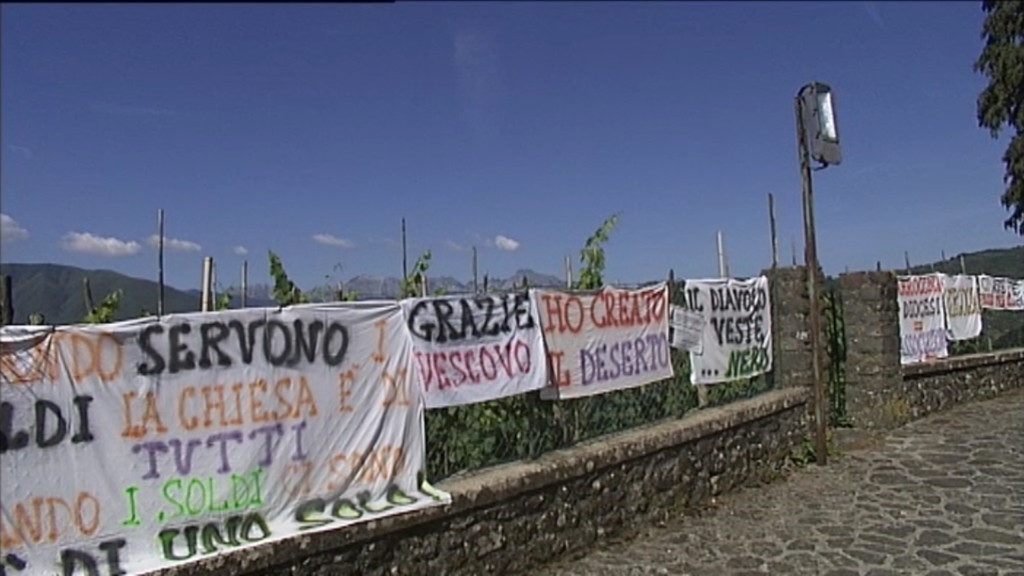 Poi, lunedì scorso il parroco, avendo tutte le autorizzazioni necessarie, ha ripreso i lavori all’antico altare, e tutto è ritornato come prima. Una dopo l’altra sono riapparse le lenzuola con i messaggi di protesta contro il parroco e la curia e nella mattina di domenica alcune decine di persone si sono ritrovati nei pressi della chiesa dove don Giuseppe Dini stava celebrando la santa messa, manifestando la loro amarezza e il disappunto su come questa si sta concludendo questa vicenda.