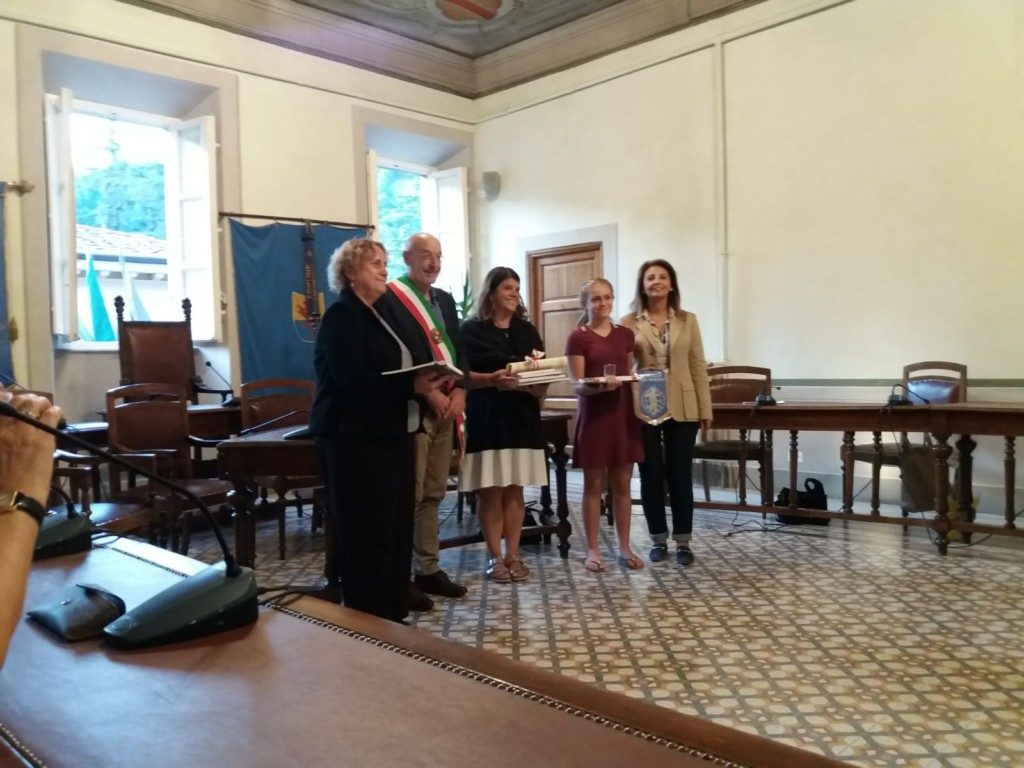 BAGNI DI LUCCA – Un premio alla memoria di Enzo Paoletti, lucchese di Monti di Villa che si è distinto all’estero. Il Sindaco Michelini, l’assessore Lenzarini e il consigliere Barsellotti lo hanno consegnato ai familiari insieme alla presidente dell’associazione Lucchesi nel Mondo Ilaria Del Bianco.