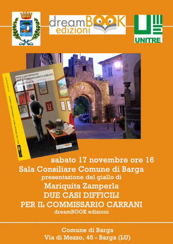 Nella Sala Consiliare di Palazzo Pancrazi, sabato 17 novembre alle 16, si presenta il libro “Due casi difficili per il Commissario Carrani” di Marquita Zamperla (dreamBook edizioni).
