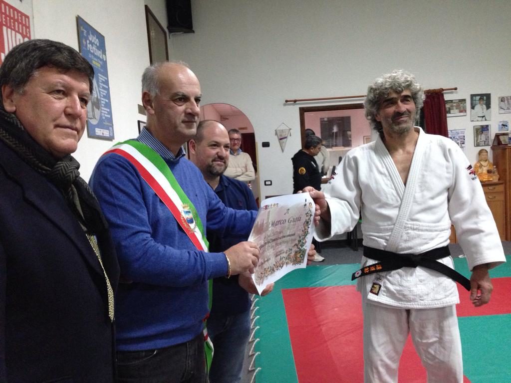 Marco Gigli atleta di indiscussa qualità agonistica (vincitore di diversi Campionati Italiani, 7° assoluto ai Campionati Mondiali di Ostia, 7° assoluto agli ultimi Campionati Europei svoltisi al Palaemirates di Glasgow, Atleta Azzurro d’Italia, nonché Direttore Tecnico Regionale delle Squadre Femminili) ha raggiunto la meta che stava diventando l’obiettivo di una meritevole carriera agonistica. V Dan agonistico Marco viene insignito di quella che rappresenta il massimo di una vita agonistica fatta di grandi sacrifici e di un incessante lavoro fuori e dentro il Tatami di palestra.
