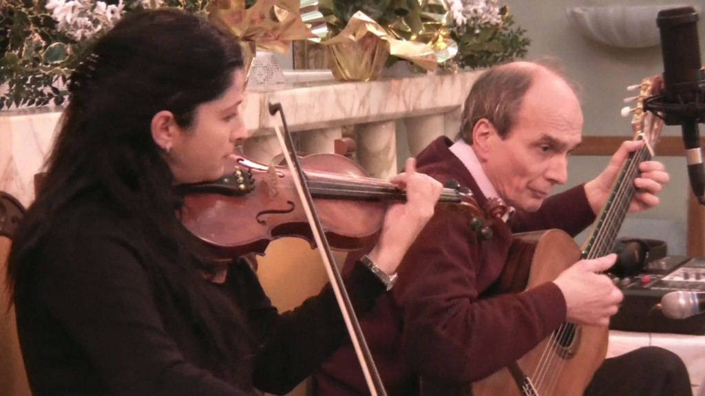 MINUCCIANO – Nella terza edizione del concerto di Natale a Gorfigliano, che ormai come consuetudine si tiene il 26 dicembre alle 15 presso la Chiesa parrocchiale dei SS Giusto e Clemente, Peter Coppo, alla chitarra classica, ed Adele Casotti al violino, entrambi originari di Gorfigliano, hanno eseguito per un’ora e mezzo musiche natalizie.