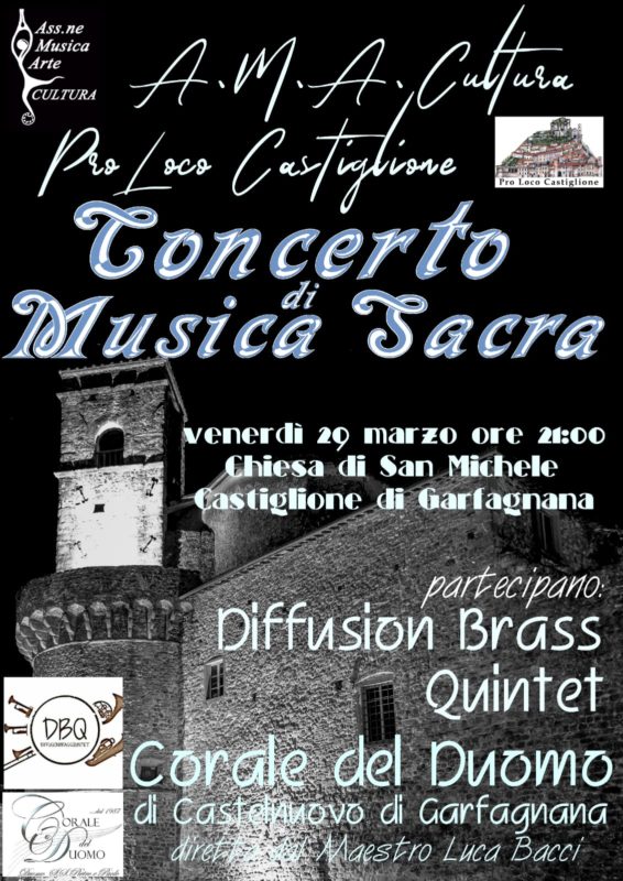 Venerdì 29 marzo 2019 alle ore 21:00 presso la chiesa di San Michele a Castiglione di Garfagnana si terrà un concerto di musica sacra.