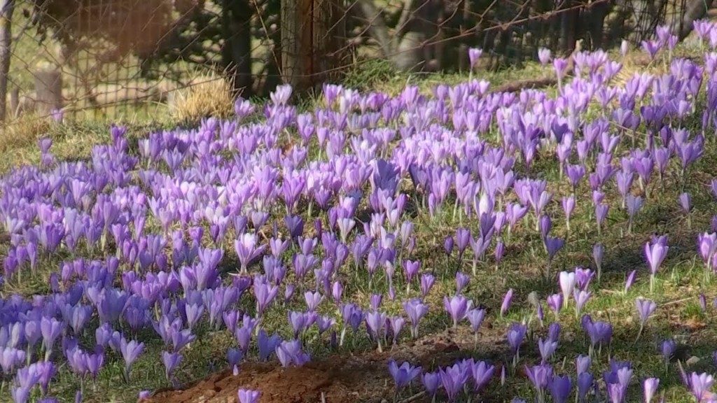 Si tratta della fioritura di Crocus Vernus o Crocus Neapolitanus, una piantina con un fiore alto circa 10 centimetri che nasce a seguito dei semi portati dal vento e quando trova le condizioni giuste, si propaga fino a formare un tappeto di colore viola. E’ giusto ricordare che, anche se esteticamente questo fiore assomiglia molto al Crocus Sativus, per dirla in breve quello da cui si ricava il prezioso Zafferano, questo non è assolutamente commestibile. Lo zafferano buono fiorisce in autunno e non cresce spontaneamente ma deve essere coltivato. Per chi volesse apprezzare questo spettacolo, che di fatto anticipa la primavera, può farlo ancora perché queste fioriture durano alcune settimane. Alto Matanna è nel comune di Stazzema ma si raggiunge comodamente dalla Val di Turrite, si supera fabbriche di Vallico prima e poi la frazione di Gragliana.