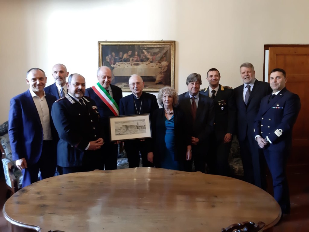 Presenti anche i più alti gradi delle forze dell’ordine e il procuratore capo Pietro Suchan. Al vescovo è stato fatto dono di una stampa del ‘700 offerta da tutti i convitati e di una