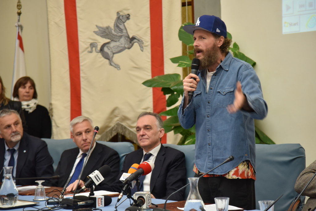 Nella conferenza di presentazione a Firenze c’è stato anche l’omaggio a Jovanotti del Carnevale di Viareggio con la consegna da parte della Fondazione del bozzetto del carro di apertura dedicato a Jova, realizzato dal giovane Michele Cinquini.