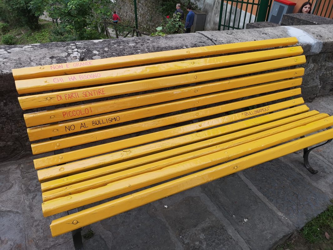 La Panchina gialla, così come quelle rosse sono il simbolo della lotta contro la violenza sulle donne, è una nuova iniziativa adottata anche in altre città e località italiane per esprimere dissenso contro il bullismo e il cyberbullismo e per lanciare un messaggio per educare alla cultura del rispetto soprattutto le giovani generazioni.