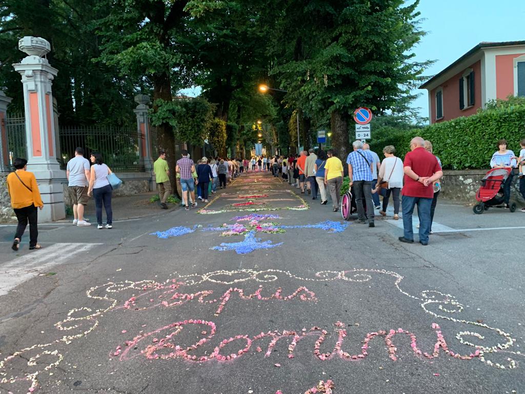 Come tutti gli anni, anche il 2019 ha visto nella serata di domenica scorsa il ritorno di una bella e colorata tradizione all’insegna della fede, quella della solennità del Corpus Domini, che in tanti dei nostri paesi si accompagna alle “infiorate”, disegni di immagini sacre che i fedeli tracciano sulla strada, lungo il percorso, completandone poi la decorazione con petali di fiori, sabbia e segatura colorata.