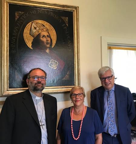 LUCCA – L’Arcivescovo ha incontrato nella sede di via San Micheletto il Presidente Marcello Bertocchini e la Vicepresidente Lucia Corrieri Puliti. Un’occasione per un tour informale tra le opere d’arte conservate nelle sale di rappresentanza e per una passeggiata in San Francesco, oltre che per un confronto a tutto campo sui tanti interventi portati a termine dalla Fondazione e sulle prospettive future.