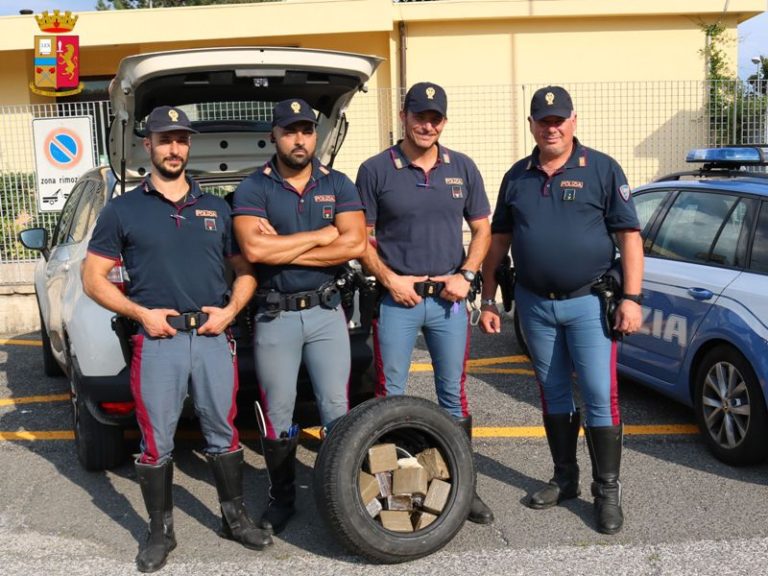 L’uomo è stato seguito e poi fermato dagli agenti nell’area di servizio di Badia al Pino, nel comune di Civitella in Valdichiana. Una volta condotto in caserma l’auto del 45enne è stata controllata e dalla ruota di scorta sono spuntati fuori una busta contenente polvere bianca, contrassegnata dal numero 100, e 10 panetti arrotolati con lo scotch. I poliziotti hanno verificato che si trattava di oltre un etto di cocaina pura e circa 10 chili di hashish che sul mercato avrebbero potuto fruttare più di centomila euro. L’auto è stata sequestrata insieme alla droga.