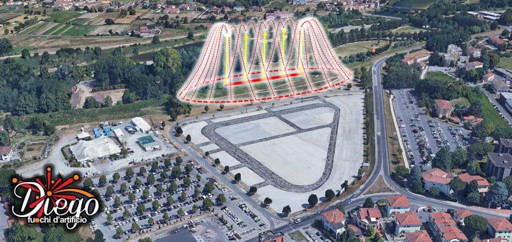 La diversa posizione delle batterie dei fuochi, approvata dalla Commissione, consentirà infatti una eccezionale visione dello spettacolo direttamente ai frequentatori del Luna Park; infatti i fuochi saranno realizzati, per la prima volta, sull’argine antistante il piazzale e non dietro, quindi senza lo schermo del filare degli alberi che molte volte ha limitato, per i precedenti fuochi una completa visione dello spettacolo pirotecnico nella sua completezza.