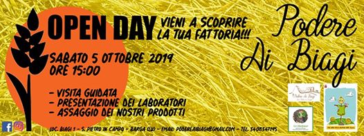 Il Podere i Biagi con la sua speciale fattoria didattica, invita tutti a partecipare ad un open day che si terrà sabato 5 ottobre alle 15. In programma una visita guidata, la presentazione dei lavoratori didattici ed un assaggio dei prodotti della fattoria.